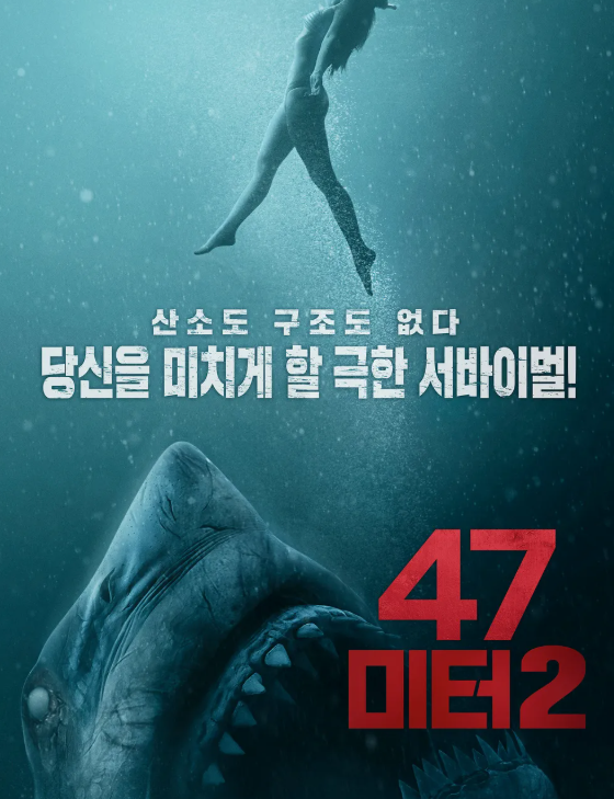 <47미터 2>는 2019년에 개봉한 요하네스 로버츠 감독의 스릴러 공포 영화입니다. 이는 2017년 개봉한 <47미터>의 속편으로, 동일한 감독이 메가폰을 잡으며 전작의 심해 공포 분위기를 이어가면서도 새로운 스토리 라인과 캐릭터를 선보입니다. 출연 배우로는 소피 넬리스, 코린 폭스, 시스틴 스탤론, 브리안느 튜주니어 등 신예 배우들이 주축을 이루어 생동감 있는 연기를 펼쳤습니다. 이 영화는 멕시코의 아름다운 해안 도시를 배경으로 하지만, 대부분의 이야기는 물속, 특히 어둡고 밀폐된 수중 동굴에서 전개됩니다. 산소 고갈, 길 잃음, 그리고 상어의 위협 등 다중적인 공포 요소들을 적절히 배치하여 관객들에게 숨 막히는 몰입감을 제공합니다. 또한, 기존 상어 영화들과는 달리, 인간의 시야가 제한된 심해라는 공간적 특성을 활용하여 '보이지 않는 공포'를 극대화하는 데 성공했습니다.