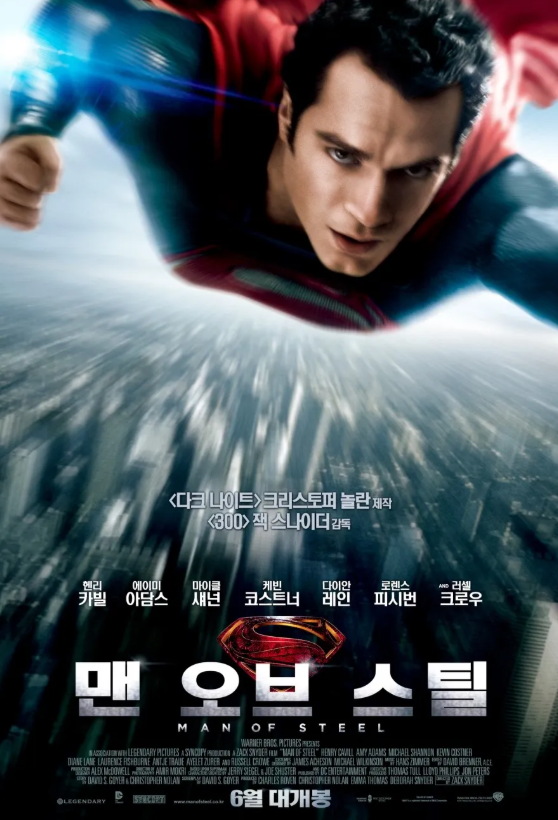 2013년 개봉한 <맨 오브 스틸>은 잭 스나이더 감독의 슈퍼히어로/액션/SF 영화입니다. 헨리 카빌이 슈퍼맨을 맡았으며, 에이미 아담스, 마이클 섀넌 등이 출연했습니다. DC 확장 유니버스의 시작을 알린 작품으로, 제작비 2.25억 달러, 월드 박스오피스 약 6.3억 달러를 기록했습니다.