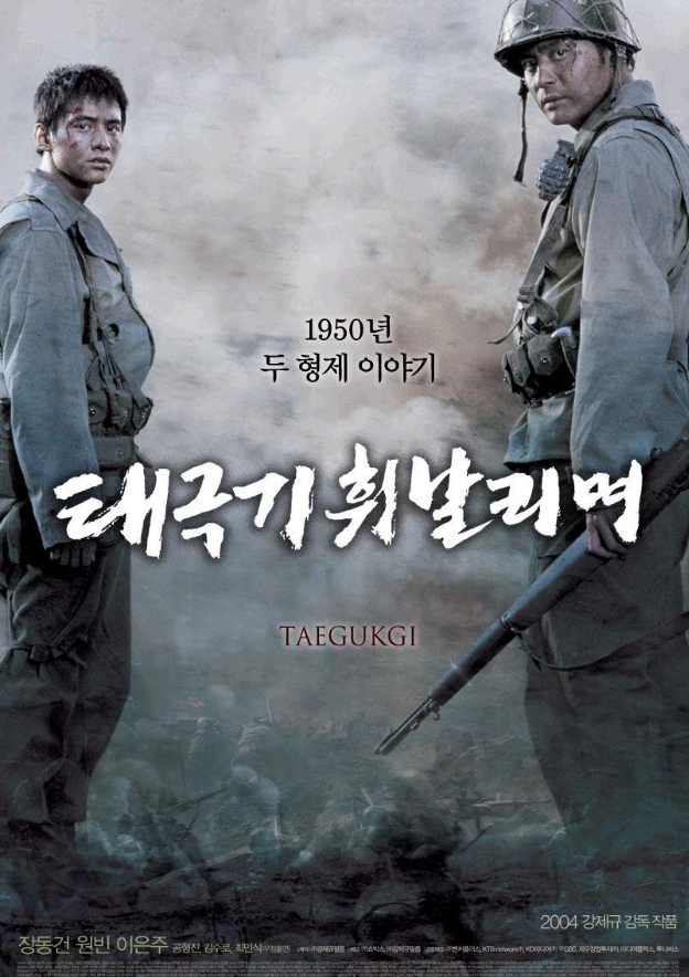 영화 <태극기 휘날리며>는 2004년 2월 5일에 개봉한 한국 전쟁 영화로, <쉬리>로 한국형 블록버스터의 가능성을 보여주었던 강제규 감독의 연출작입니다. 6.25 전쟁이라는 한국 현대사의 비극을 배경으로, 두 형제의 참혹한 운명을 통해 전쟁의 비인간성과 가족애의 소중함을 그린 작품입니다. 최첨단 기술을 활용한 대규모 전투 장면과 섬세한 캐릭터 묘사를 결합하여 한국형 전쟁 영화의 새로운 지평을 열었다는 평가를 받습니다. 주연 배우로는 동생 진석을 구하기 위해 전쟁터에서 영웅이 되려 하는 형 이진태 역에 장동건, 그리고 강제로 징집되어 형과 함께 전쟁의 소용돌이에 휘말리는 동생 이진석 역에 원빈이 출연하여 열연을 펼쳤습니다. 두 배우의 연기력과 영화의 완성도에 힘입어 개봉 당시 1,174만 명이 넘는 관객을 동원하며 역대 두 번째 천만 관객 돌파 영화로 기록되었습니다. 이는 한국 영화 산업의 규모와 가능성을 다시 한번 확인시켜 준 흥행 성공 사례로 남아 있습니다. 영화는 한국전쟁 유해발굴에 관한 다큐멘터리에서 영감을 받아 시나리오 작업이 시작되었으며, 제작 과정에서 국방부와의 갈등이 있었으나 제작진이 승소하며 예정대로 개봉할 수 있었습니다. 로튼토마토에서 80%의 신선도를 기록하는 등 해외에서도 긍정적인 평가를 받았습니다.